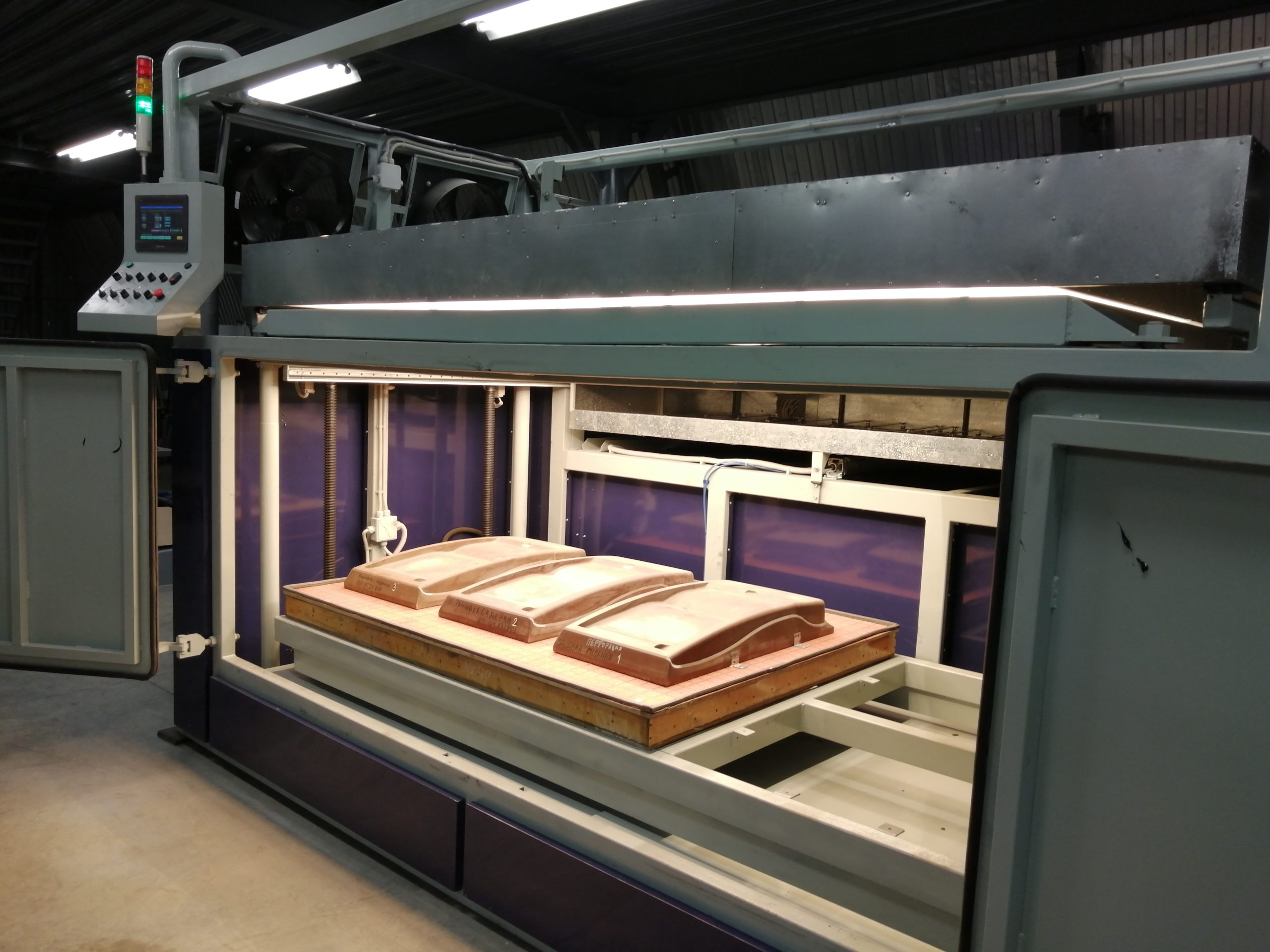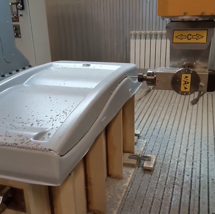 - Опытная оснастка – изготавливается фрезерованием из МДФ на универсальных портальных обрабатывающих центрах, способна выдержать несколько пробных формовок.