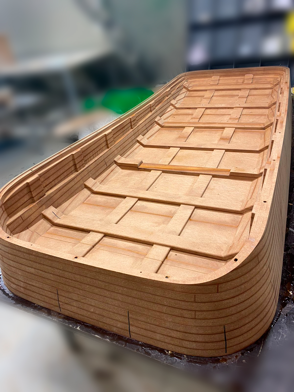 - Опытная оснастка изготавливается из МДФ плит, путем склейки необходимого количества слоев. На ЧПУ станке фрезеруется будущая форма, далее производится формование детали, после отправляется образец заказчику. На опытной оснастки можно изготовить не большое количество(от 1 до 10)изделий, все зависит от сложности детали.