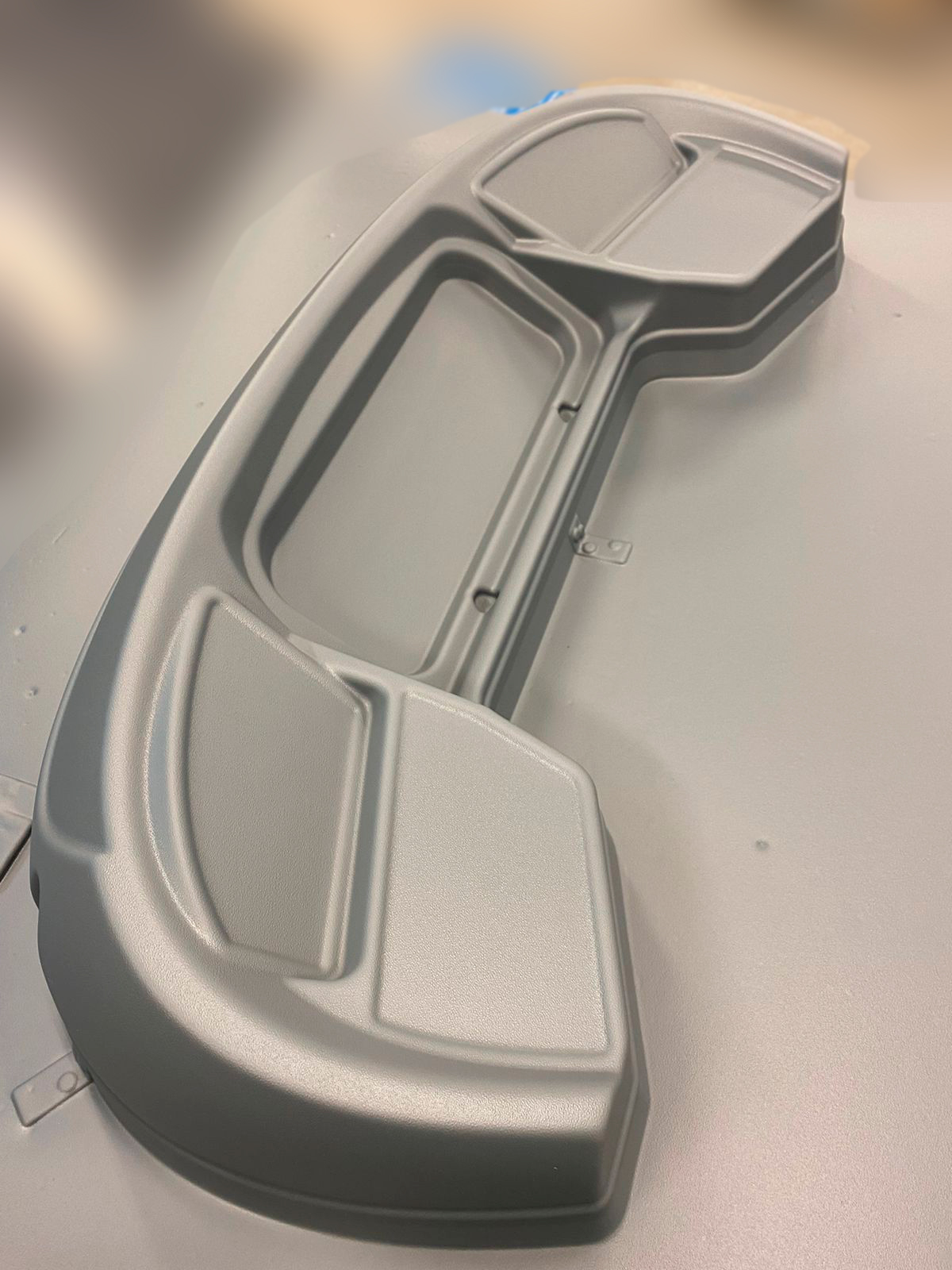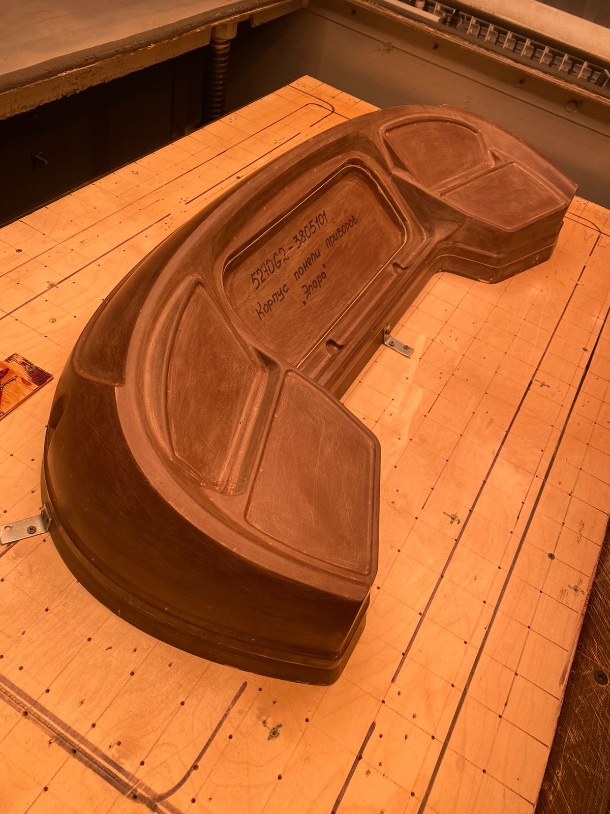 - После того как создан и одобрен проект,мы фрезеруем опытную оснастку на высокоточном ЧПУ станке из МДФ, делаем пробный образец детали, после того как заказчик утвердил проект, мы приступаем к изготовлению промышленной оснастки из эпоксидной (термостойкой) смолы, такая оснастка может выдержать до несколько тысяч циклов формования.