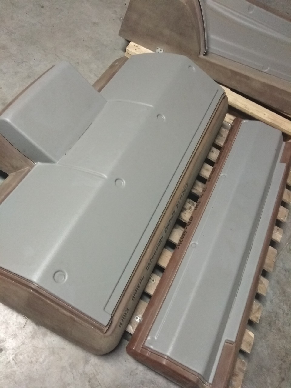 - Промышленная оснастка изготавливается из эпоксидной смолы путем нанесения нескольких слоев смолы, далее прокладывается стеклоткань от 5-7 слоев и усиливается фанерой 15 мм, делается каркас, ребра жесткости. Количество деталей изготовленных на такой оснастки может достигать нескольких тысяч штук.